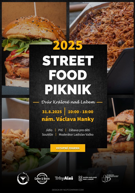 STREET FOOD PIKNIK 🍺🍔Dopřejte svým chuťovým pohárkům kulinářský zážitek a přijďte v neděli 31. srpna v čase 10-18 hodin do Dvora Králové nad Labem na náměstí Václava Hanky👍. Koná se zde první dvorský Street food piknik. 🍲🌭Ochutnáte rozmanitou škálu domácích, exotických a lákavých kuchyní. Od slaného po sladké, každý si zde vybere. Kromě jídla a […]